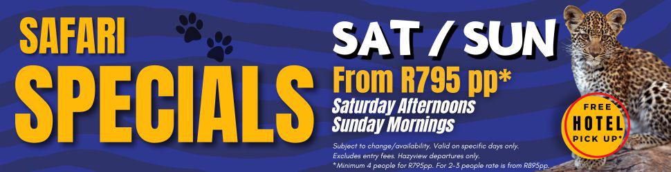 Pick-up is available from most lodges in Hazyview including Perry’s Bridge Trading Post, Sabi River Sun, Kruger Park Lodge, Hippo Hollow, Sanbonani Resort, and more. Collection from Phabeni Gate, Skukuza or Kruger Gate can be arranged on request.